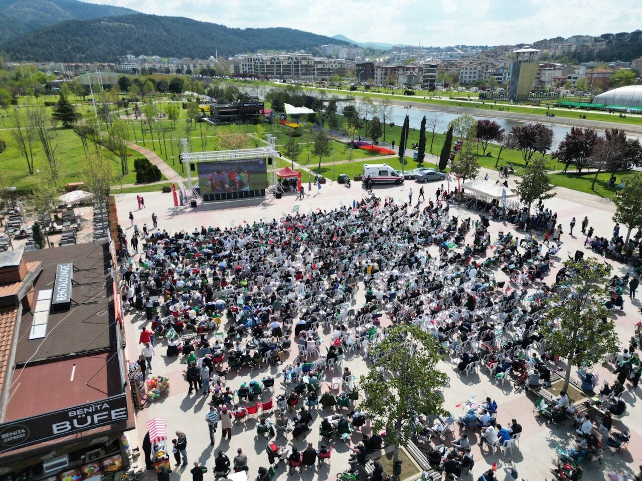 Kentin dört bir yanını dev Bursaspor bayraklarıyla donatan Büyükşehir Belediyesi, stadyuma gidemeyen taraftarlar için Hüdavendigar Kent Parkı ve Kültürpark girişinde dev ekranlar kurdu. On binlerce Bursalı, maç heyecanını meydanlarda kurulan alanlarda yaşarken; trafik lambalarına yazılan "Şampiyon Bursaspor" ibaresiyle şehirdeki coşku her noktaya taşındı.